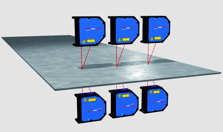 5.均勻度的檢查:在要測量的工件運動的傾斜方向一行放幾個激光傳感器,直接通過一個傳感器進行度量值的輸出,另外也可以用一個軟件計算出度量值,并根據(jù)信號或數(shù)據(jù)讀出結(jié)果。